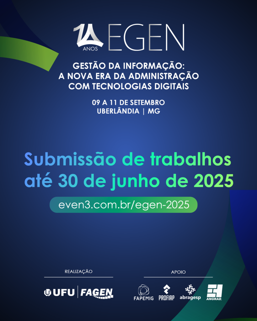 Com o tema “Gestão da Informação na Era Digital”, o EGEN 2025 será um espaço dinâmico para debates sobre os desafios contemporâneos da área, incentivando o compartilhamento de pesquisas, práticas inovadoras e experiências acadêmicas transformadoras.